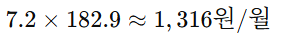 - 전기세: 10.8 × 182.9 ≈ 1,975원/월