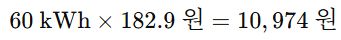 - 집 전기세 단가: 182.9원/kWh (2단계 기준)